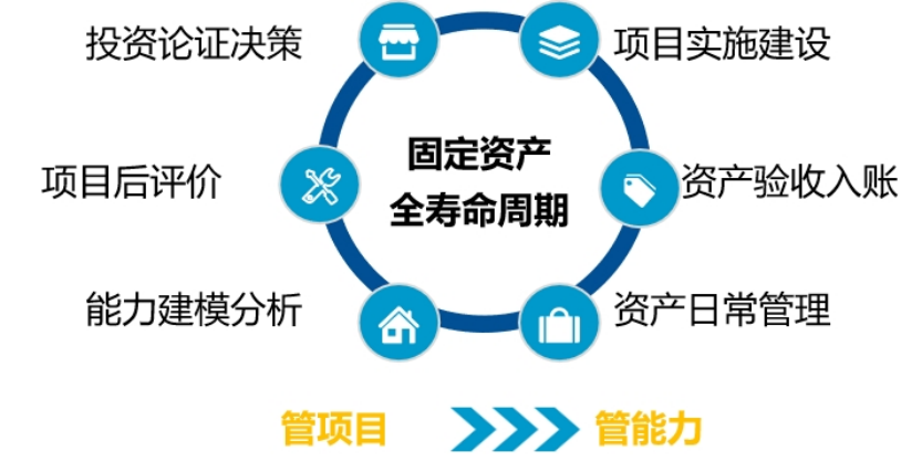 投資經(jīng)營全過程:從固定資產(chǎn)投資項目規(guī)劃、投資決策、項目實施、驗收,到固定資產(chǎn)運營、處置、項目評價全壽命周期管理。