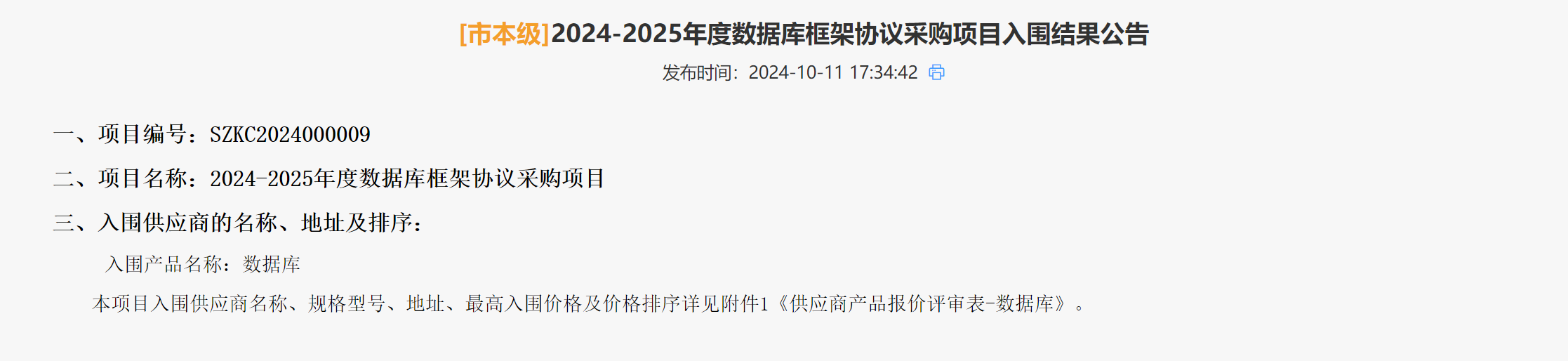 近日,深圳政府采購業務框架協議采購系統公布了《2024-2025年度數據庫框架協議采購項目》入圍結果公告,神通數據庫成功入圍。