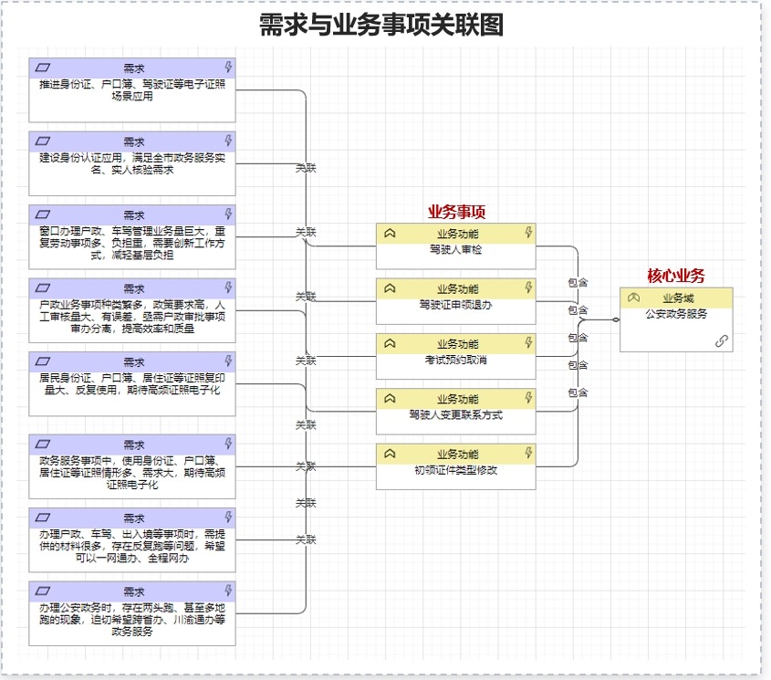 在“三張清單”中,需求分析是基礎,聚焦于國家所需、群眾所盼、未來所向。要找準最緊迫、最現實、最棘手的問題,作為改革的突破口。因此,重大需求清單與TOGAF框架中的利益相關者及需求分析視圖的含義十分契合。
